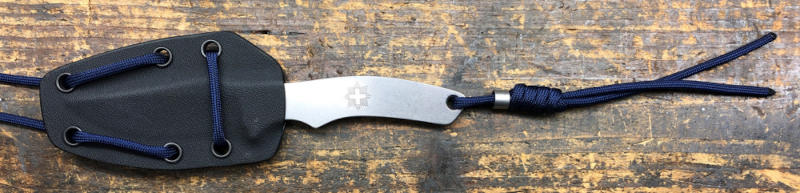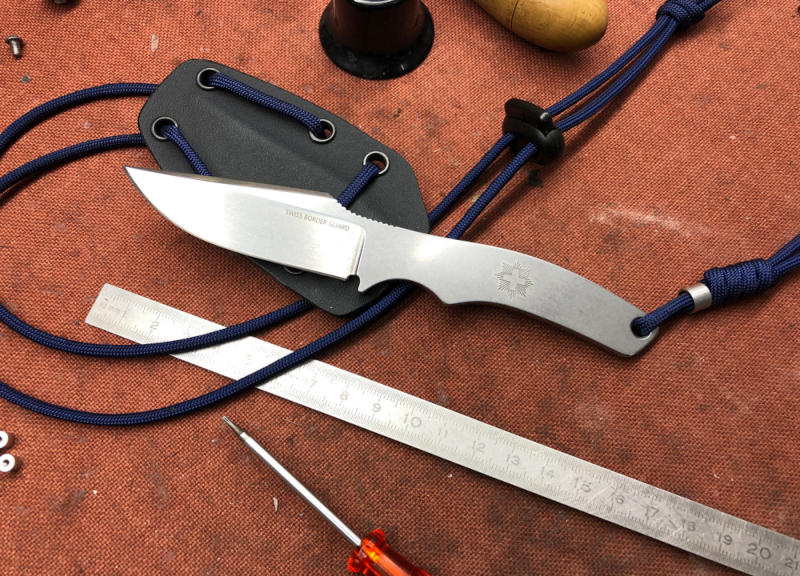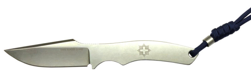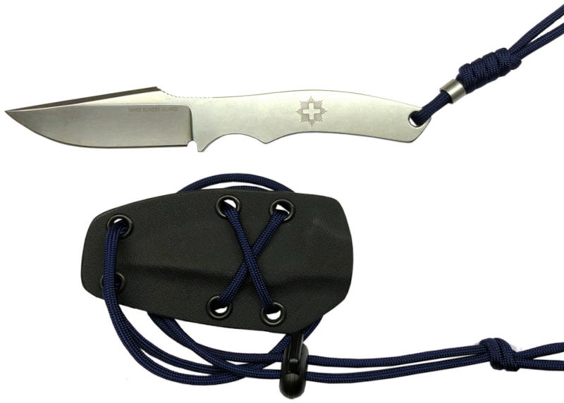 Das «OFFICIAL SWISS BORDER GUARD KNIFE» Neckknife ist ein handliches, kleines Messer für den täglichen Gebrauch bei der Arbeit oder in der Freizeit. Es schmiegt sich angenehm in die Hand und bietet dank der Fingermulden und dem gerippten Klingenrücken ideale Griffmöglichkeiten. Die Klinge ist von Hand geschliffen und weisst einen sehr feinen Schnitt auf. Der verwendete Böhler N690 Klingenstahl bleibt wegen seiner hohen Härte äusserst lange scharf. Das 3mm dicke Messer lässt sich im Kydex-Etui um den Hals tragen oder mit der mitgelieferten Schlaufe am Gurt befestigen. Dies ermöglicht zahlreiche Tragweisen entsprechend dem Einsatzgebiet. Auf dem Griff trägt es das Strahlenkreuz des Schweizer Grenzwachtkorps (GWK). Das Messer wurde in Zusammenarbeit und mit der Lizenz des Schweizer Grenzwachtkorps (GWK) entwickelt und wird in Handarbeit in der Klötzli Messerschmiede in Burgdorf hergestellt.