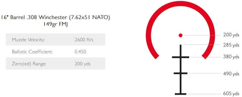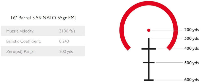 Die 6x36-Modelle sind mit einem Bullet Drop Compensating (BDC) Absehen ausgestattet, das für verschiedene Munitionsarten ausgelegt ist – darunter .223/5.56, .308WIN, .300BLK und 7.62x39.