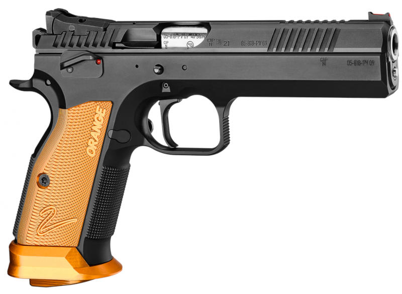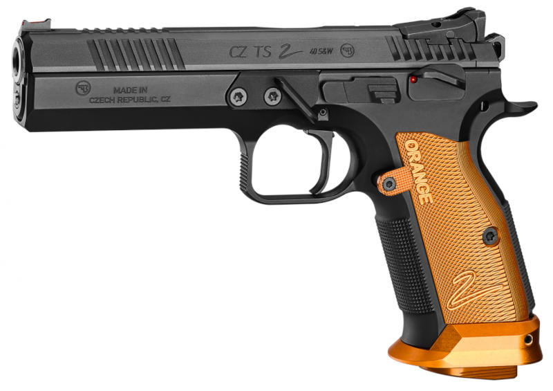 Pistole, CZ, Tactical Sport 2 Orange, Kal. 9mm Para/Luger/9x19, manuelle Sicherung, orange Alu-Griffschalen, Mikrovisierung mit Hi-Viz Korn, 20 Schuss Magazin