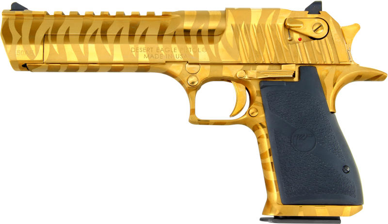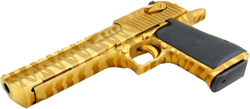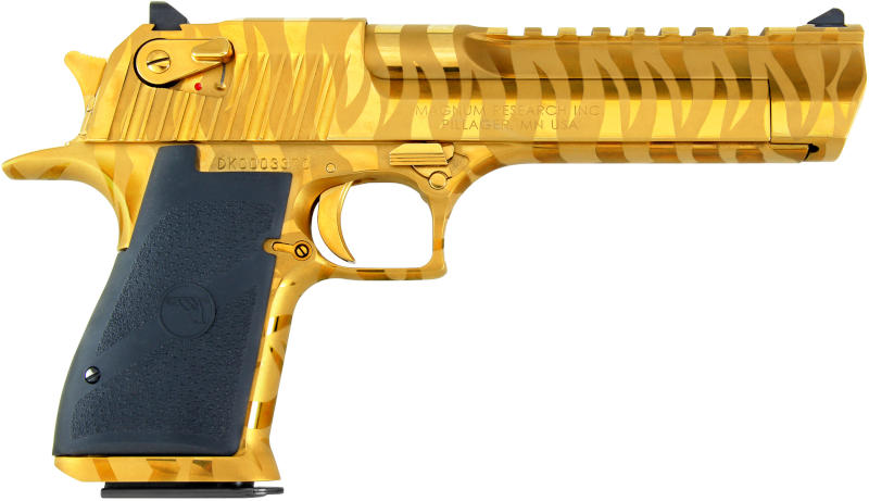 Pistole, Magnum Research Desert Eagle, Mark XIX-2, Kal. .50AE / .44 oder .357 Magnum, Titanium Gold with Tiger Stripes, 6'' Lauf