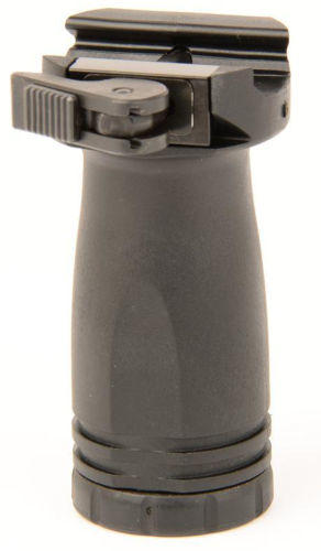 Kurzer Vordergriff zur Montage an der NAR/Picatinny Schiene der Waffe. Der Griff ist innen hohl, der Bodendeckel kann abgeschraubt werden und der Innenraum zum Verstauen von Kleinutensilien genutzt werden. Bei Bedarf kann der Vordergriff dank der QD-Montage leicht und schnell von der NAR/Picatinny-Schiene der Waffe abgenommen werden.
